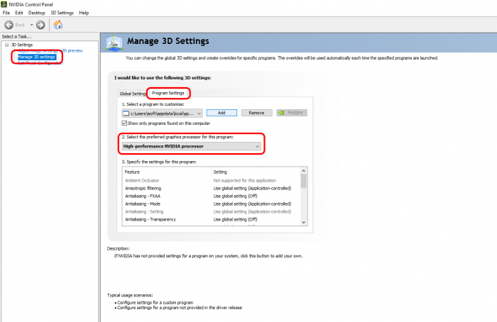 Auswahl der externen Grafikkarte nur für InstalSystem 5 Anwendung